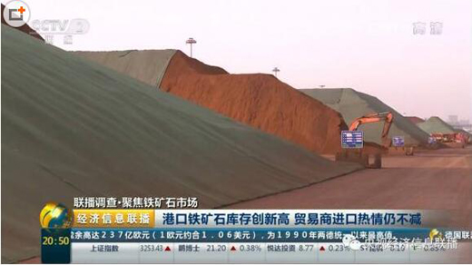 這里是日照港的鐵礦石碼頭,大家可以看到我身后的堆場(chǎng)里,大大小小堆積如山的全部都是鐵礦石,目前港口鐵礦石庫存有1800萬噸,接近歷史高位,而陸續(xù)還有新的鐵礦石進(jìn)港,現(xiàn)在港口的堆場(chǎng)非常緊張,連平時(shí)存放煤炭和鋼材的場(chǎng)地也被用來堆放鐵礦石。