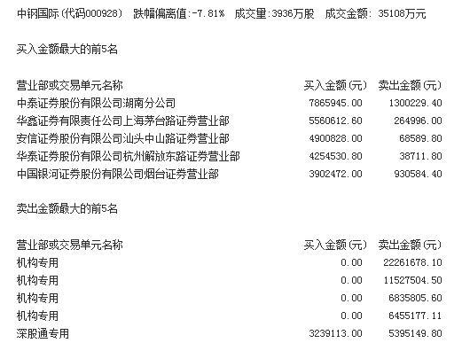 值得注意的是,在中鋼國際4月21日、4月24日以及5月8日跌停時(shí),該股賣出席位前五均以機(jī)構(gòu)為主,賣出金額較多,據(jù)計(jì)算,包括今日在內(nèi)的4個(gè)交易日里,機(jī)構(gòu)累計(jì)賣出中鋼國際金額已經(jīng)達(dá)到2.94億元之多。