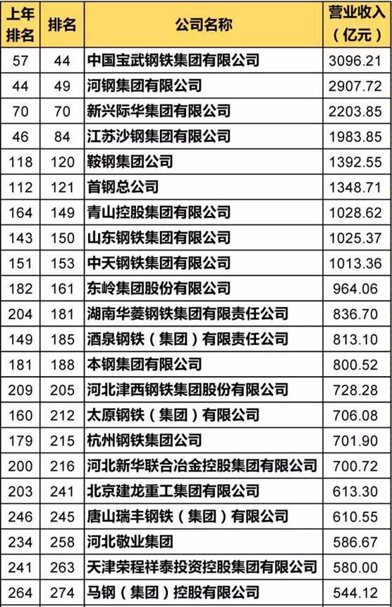 鋼鐵行業(yè)中,營業(yè)收入超過千億的企業(yè)還有江蘇沙鋼集團(tuán)有限公司(第84位)、鞍鋼集團(tuán)公司(第120位)、首鋼總公司(現(xiàn)改名為“首鋼集團(tuán)”,第121位)、青山控股集團(tuán)有限公司(第149位)、山東鋼鐵集團(tuán)有限公司(第150位)、中天鋼鐵集團(tuán)有限公司(第153位)等。鋼鐵企業(yè)群體整體扭虧,情況好轉(zhuǎn)。
