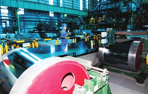 8月份以來,宏興股份公司碳鋼薄板廠尋找到華東市場對儀表專用超深沖熱鍍鋅板有需求,策劃制定了鈮鈦復(fù)合IF鋼冶煉、軋制試驗(yàn)方案及儀表專用超深沖熱鍍鋅板試驗(yàn)方案。8月30日,首次成功冶煉、軋制一爐鈮鈦復(fù)合IF鋼。9月12日,鍍鋅2號生產(chǎn)線首次試制40噸儀表專用超深沖熱鍍鋅板,表面質(zhì)量優(yōu)良,將發(fā)往華東某終端試用。圖為該廠正在運(yùn)行的2號鍍鋅線。