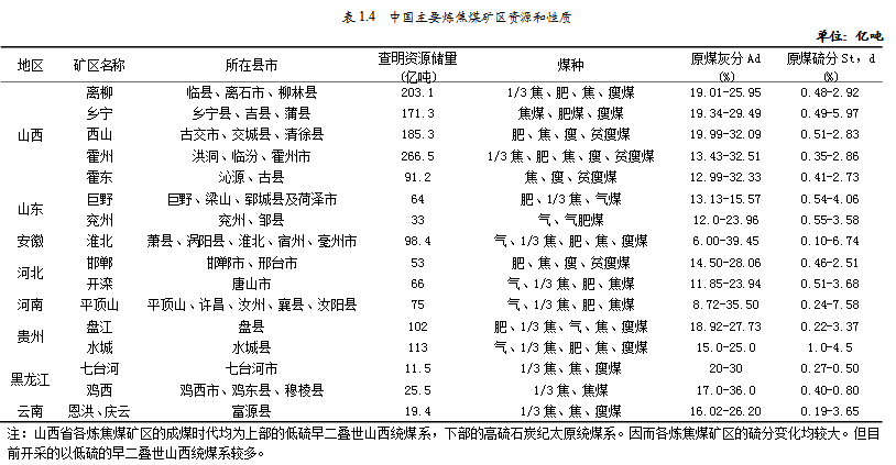 我國(guó)河北、河南、及東北地區(qū)煉焦煤煤質(zhì)較好;西南地區(qū)由于煤炭資源硫分很高,煤質(zhì)普遍較差。