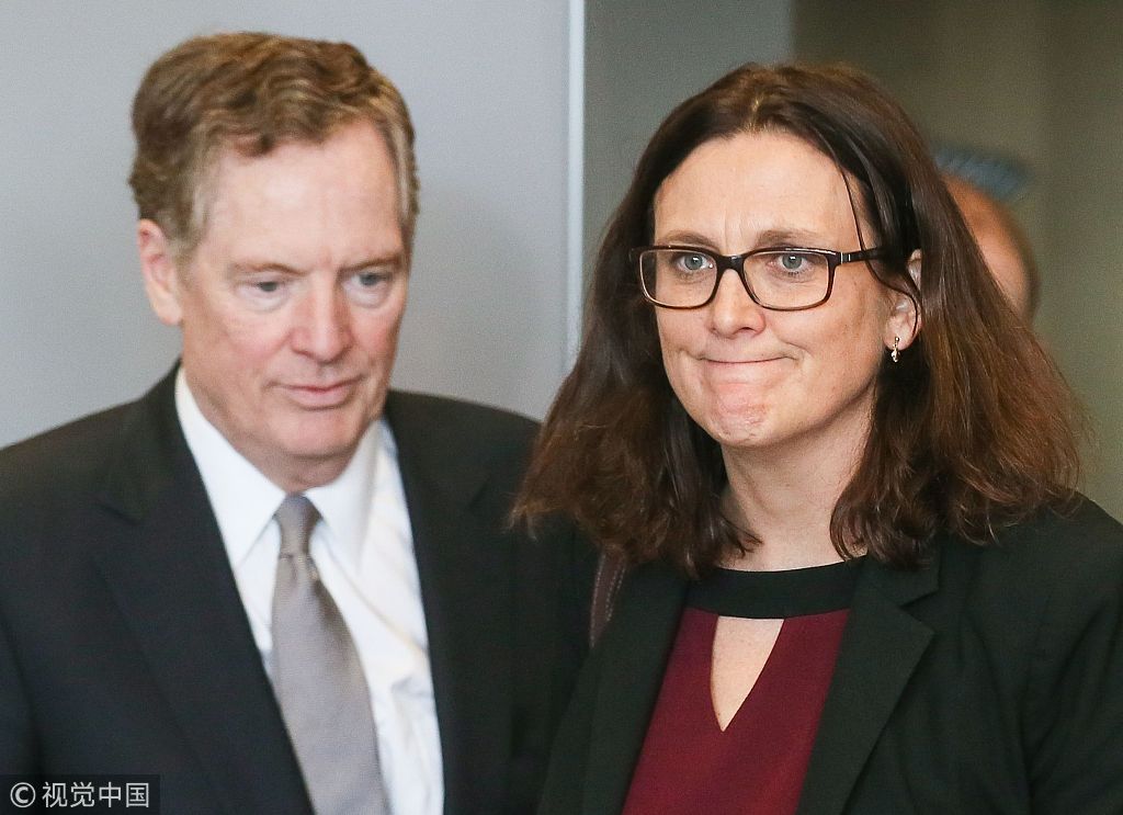 歐盟貿(mào)易專員賽西莉亞•馬爾姆斯特倫(右)和美國著名貿(mào)易代表、“強硬派”羅伯特•萊特希澤@視覺中國