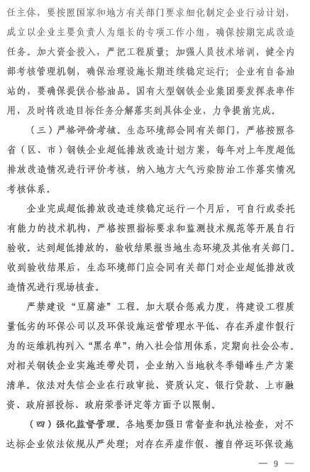 “對(duì)逾期未完成超低排放改造的鋼鐵企業(yè),省級(jí)政府可在現(xiàn)行目錄銷(xiāo)售電價(jià)或市場(chǎng)交易電價(jià)基礎(chǔ)上實(shí)行加價(jià),加價(jià)標(biāo)準(zhǔn)不高于每千瓦時(shí)0.1元。”