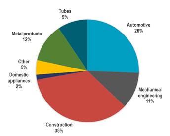 3、 德國鋼鐵需求集中于建筑、機械和汽車領(lǐng)域