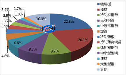 圖5  2017年中國進口德國鋼材品種結(jié)構(gòu)