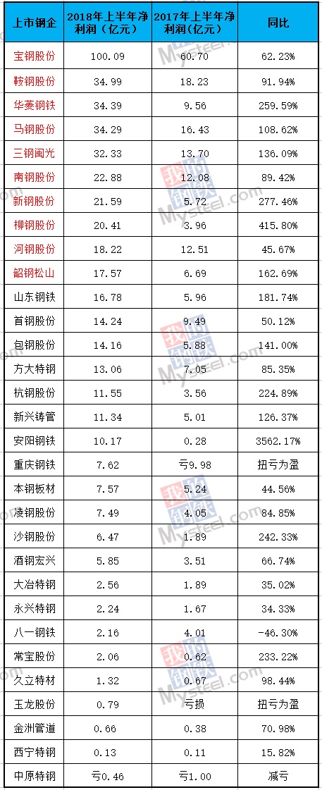 此外,寶鋼股份上半年實(shí)現(xiàn)歸屬于上市公司股東的凈利潤為100.09億元,占據(jù)榜首。其次是鞍鋼股份和華菱鋼鐵。具體如下圖:
