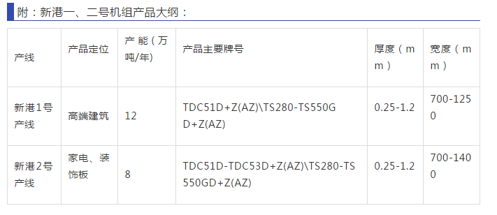 寶鋼黃石新港區(qū)域是按照寶鋼股份的發(fā)展規(guī)劃,本著節(jié)能、環(huán)保的發(fā)展趨勢,定位高端建材、家電、裝飾用板,一期建設一條20萬噸熱鍍鋁鋅機組、一條12萬噸建筑彩涂機組、一條8萬噸家電及裝飾彩涂機組,其中家電及裝飾彩涂機組也將于近期投產(chǎn)。