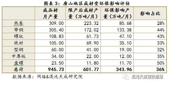 唐山地區(qū),從環(huán)保影響的細(xì)分品種來(lái)看,對(duì)帶鋼與熱卷影響產(chǎn)量較大,主要是由于這些品種產(chǎn)量較大。雖然盤(pán)螺受環(huán)保影響比例較大,但是由于產(chǎn)量本身不大,所以總量影響有限。這也與前期我們預(yù)計(jì)的高端產(chǎn)品因?yàn)榄h(huán)保設(shè)備較為完善,而低端產(chǎn)品環(huán)保設(shè)備較為落后,整體受環(huán)保影響較大看法一致。