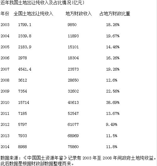 而從2003年到2014年,這期間的土地出讓總收入約為23.55萬億元,總體來看,這12年間土地出讓純收益占到出讓收入總額的29.9%。