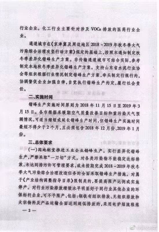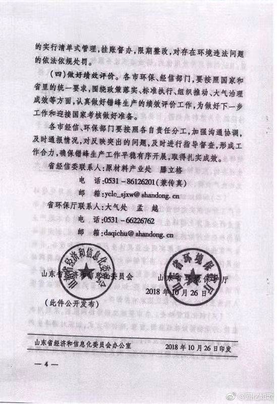 10月26日,山東省經(jīng)信委及環(huán)境保護(hù)廳聯(lián)合發(fā)文,《關(guān)于組織實施2018-2019年度重點行業(yè)秋冬季差異化錯峰生產(chǎn)的通知》,通知要求濟南、淄博、濟寧、德州、聊城、濱州、菏澤7個通道城市的鋼鐵、焦化、鑄造等行業(yè)企業(yè)在2018年11-15日至2019年3月15日期間采取錯峰生產(chǎn)。各市可根據(jù)空氣質(zhì)量適當(dāng)延長或縮短錯峰生產(chǎn)時間,但錯峰生產(chǎn)實施時間最短不得少于2個月,且必須包含2018年12月份和2019年1月份。具體文件如下: