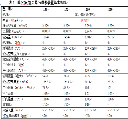 表1 低NOx混合煤氣燃燒裝置基本參數(shù)