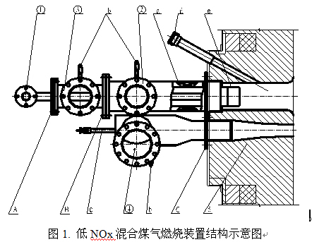 圖1. 低NOx混合煤氣燃燒裝置結(jié)構(gòu)示意圖