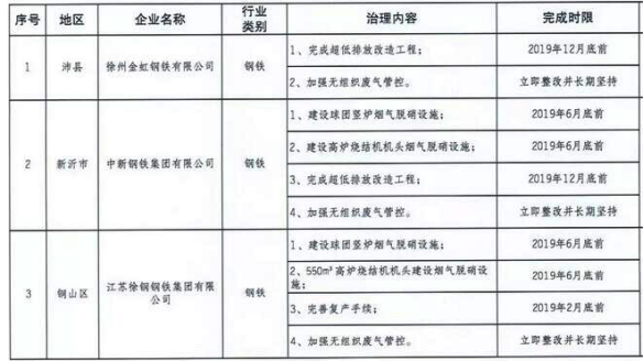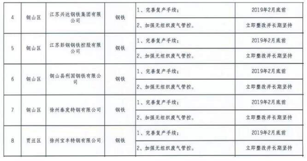 2019年5月底前,完成豐縣建滔能源、邳州沂州焦化和沛縣天安化工(與觀茂焦化整合成一家)等企業(yè)干熄焦改造環(huán)保項目建設(shè),深入推進(jìn)其余焦化企業(yè)關(guān)停拆除任務(wù)。