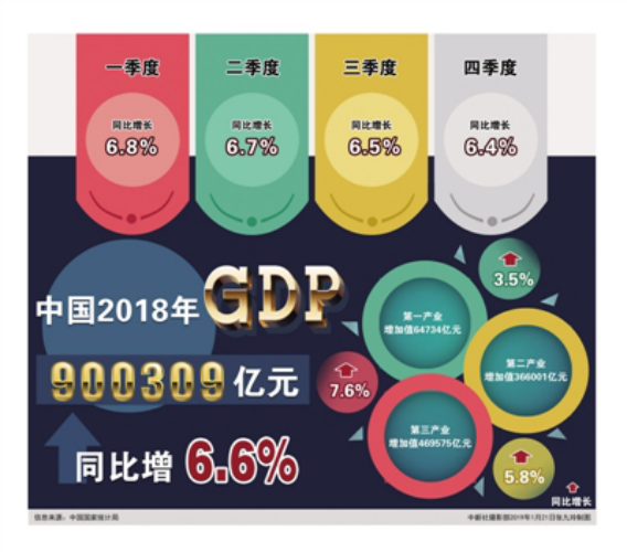 2月28日,國家統(tǒng)計(jì)局公布的《2018年國民經(jīng)濟(jì)和社會發(fā)展統(tǒng)計(jì)公報(bào)》顯示,2018年全年,國內(nèi)生產(chǎn)總值(GDP)突破90萬億元,比上年增長6.6%;全年居民消費(fèi)價(jià)格比上年上漲2.1%,低于3%左右的預(yù)期目標(biāo)。
