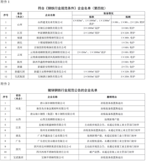重磅!新增12家 撤銷11家 工信部公布符合《鋼鐵行業(yè)規(guī)范條件》企業(yè)名單(第四批)