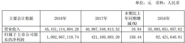 核心提示:酒鋼宏興4月25日晚間發(fā)布公告稱,公司2018年實(shí)現(xiàn)營(yíng)業(yè)收入454.31億元,同比增長(zhǎng)10.84%;歸屬于上市公司股東的凈利潤(rùn)10.93億元,同