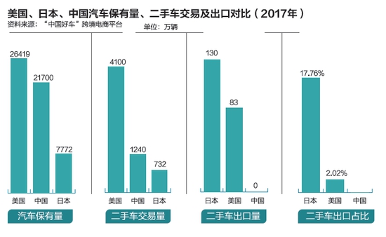 根據(jù)中國汽車流通協(xié)會統(tǒng)計,2018年中國二手車交易量達(dá)1382萬輛,不到新車銷量(2808萬輛)的一半。如按發(fā)達(dá)國家二手車交易量是新車銷量2倍,二手車出口是交易量10%以上測算,中國二手車出口發(fā)展?jié)摿艽蟆?/span>