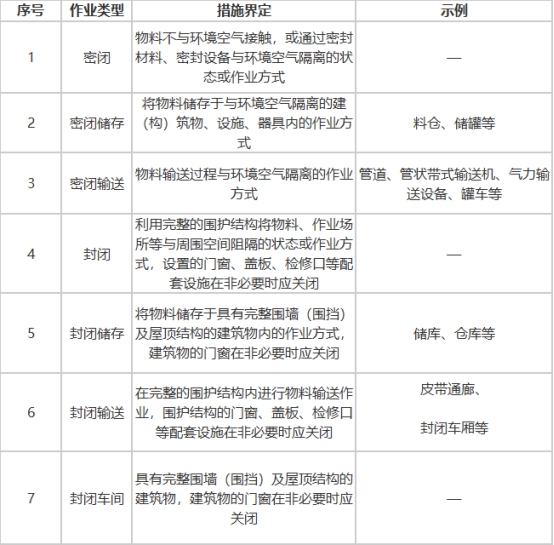 2.無(wú)組織排放控制措施。全面加強(qiáng)物料儲(chǔ)存、輸送及生產(chǎn)工藝過(guò)程無(wú)組織排放控制,在保障生產(chǎn)安全的前提下,采取密閉、封閉等有效措施,有效提高廢氣收集率,產(chǎn)塵點(diǎn)及車(chē)間不得有可見(jiàn)煙粉塵外逸。無(wú)組織排放控制及措施的界定見(jiàn)附1—2、附1—3。