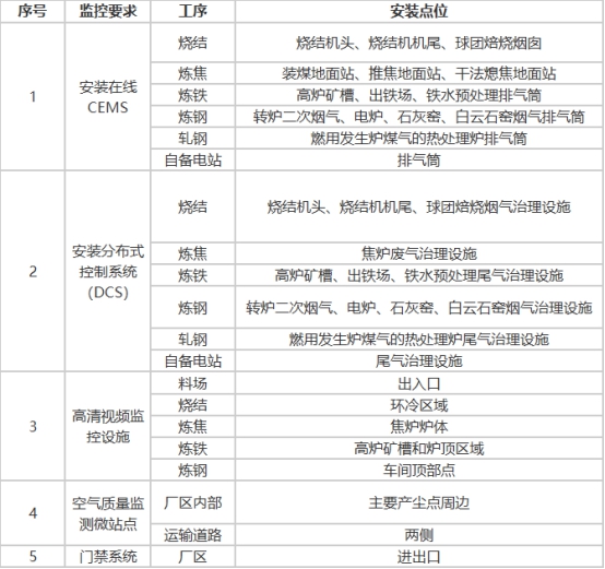 (三)加強(qiáng)企業(yè)污染排放監(jiān)測(cè)監(jiān)控。鋼鐵企業(yè)應(yīng)依法全面加強(qiáng)污染排放自動(dòng)監(jiān)控設(shè)施建設(shè),與當(dāng)?shù)厣鷳B(tài)環(huán)境及有關(guān)部門(mén)聯(lián)網(wǎng)。企業(yè)應(yīng)按照鋼鐵工業(yè)及煉焦化學(xué)工業(yè)自行監(jiān)測(cè)技術(shù)指南要求,編制自行監(jiān)測(cè)方案,開(kāi)展自行監(jiān)測(cè),如實(shí)向社會(huì)公開(kāi)監(jiān)測(cè)信息。實(shí)施超低排放改造的鋼鐵聯(lián)合生產(chǎn)企業(yè),應(yīng)按要求全面加強(qiáng)自動(dòng)監(jiān)控、過(guò)程監(jiān)控和視頻監(jiān)控設(shè)施建設(shè),重點(diǎn)污染源污染治理設(shè)施應(yīng)安裝分布式控制系統(tǒng)(DCS),重點(diǎn)工序安裝高清視頻監(jiān)控設(shè)施,關(guān)鍵點(diǎn)位布設(shè)空氣質(zhì)量監(jiān)測(cè)微站點(diǎn),并監(jiān)控運(yùn)輸車(chē)輛進(jìn)出廠區(qū)情況;短流程鋼鐵企業(yè)和獨(dú)立軋鋼企業(yè)可相應(yīng)優(yōu)化。具體見(jiàn)附1—4。