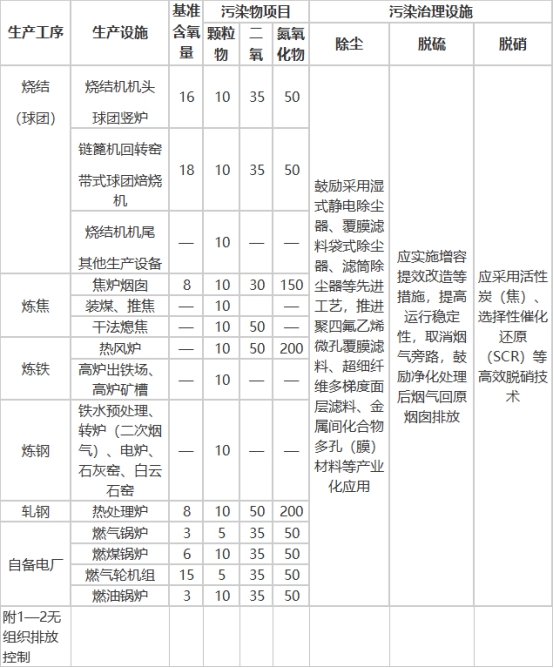 附1—1鋼鐵企業(yè)超低排放指標(biāo)限值及推薦技術(shù)