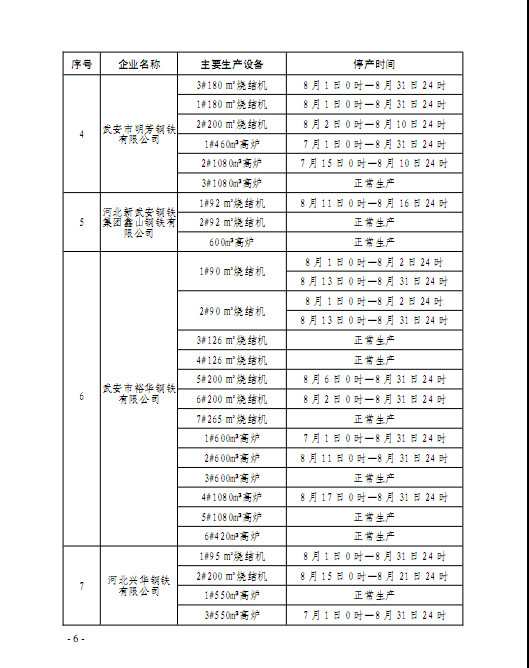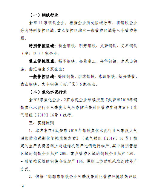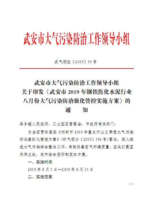 昨日武安市大氣污染防治工作領(lǐng)導(dǎo)小組關(guān)于印發(fā)《武安市2019年鋼鐵焦化水泥行業(yè)八月份大氣污染防治強(qiáng)化管控實(shí)施方案》的通知正式出臺(tái),其中鋼鐵生產(chǎn)企業(yè)依舊是重點(diǎn)治理對(duì)象。不過(guò)相比7月初出臺(tái)的治理方案,此次管控方案略有調(diào)整。