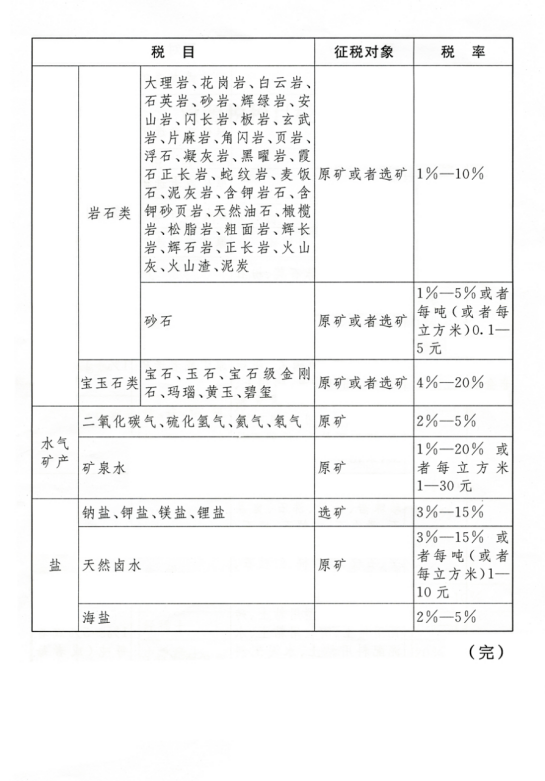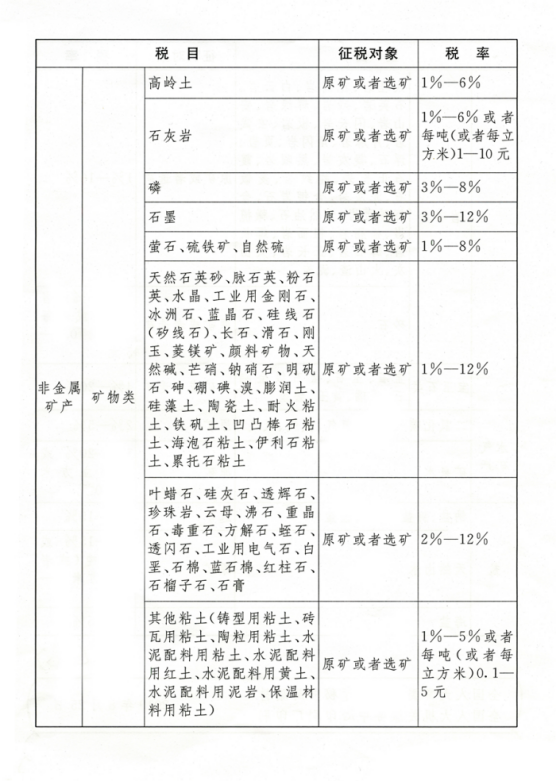 應(yīng)稅資源的具體范圍,由本法所附《資源稅稅目稅率表》(以下稱(chēng)《稅目稅率表》)確定。