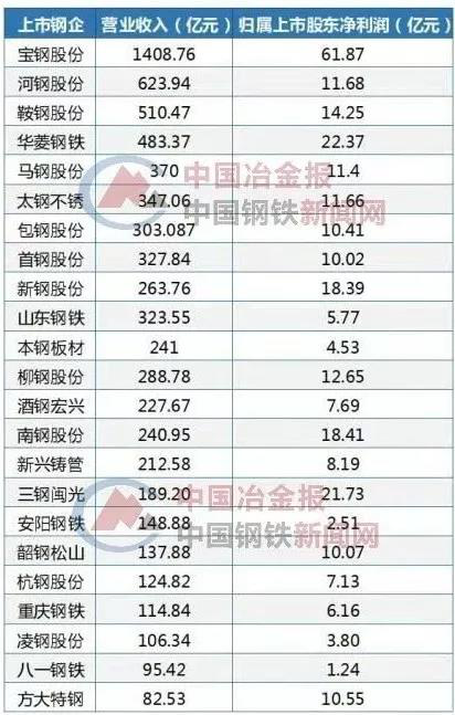 核心提示:日前,30家上市鋼企半年報(bào)已經(jīng)全部披露完畢,寶鋼股份以1408.76億元的營(yíng)業(yè)收入和61.87億元的歸屬上市股東凈利潤(rùn)排在首位。半年報(bào)