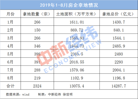 數(shù)據(jù)顯示,今年1-8月份,房企拿地總價達14288億元。分月份來看,自4月及5月達到高峰后,開始逐步回落,而房企8月份拿地總價與7月份相比下滑逾40%。