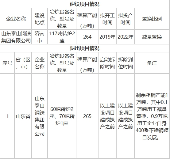 山東泰山鋼鐵集團(tuán)有限公司產(chǎn)能置換方案公示