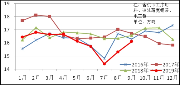 9月份生產(chǎn)鍍錫板10萬噸,與上年同期基本持平;彩涂板12萬噸,同比減少1萬噸,下降5.5%;電工鋼板帶66萬噸,同比增加4萬噸,上升5.8%。