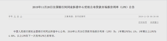 2019年11月20日全國(guó)銀行間同業(yè)拆借中心受權(quán)公布貸款市場(chǎng)報(bào)價(jià)利率(LPR)公告