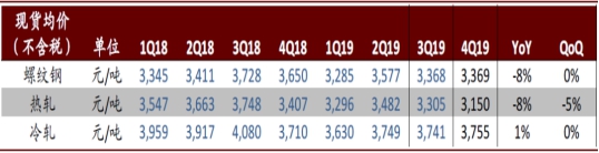 圖表: 螺紋鋼、冷軋、熱軋現(xiàn)貨價(jià)格季度均值情況