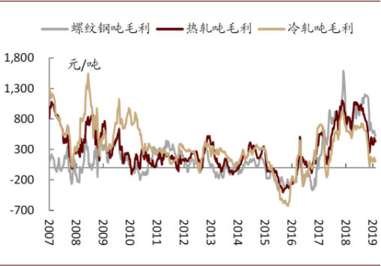 隨著全球鐵礦石供給缺口逐步收斂,我們認(rèn)為2020年噸鋼成本中樞將隨著鐵礦石價(jià)格中樞的回落下移。因此,我們預(yù)期2020年行業(yè)鋼價(jià)中樞隨需求放緩、成本支撐減弱而走弱的概率較高,長(zhǎng)流程噸毛利以弱穩(wěn)為主;同時(shí),我們預(yù)期建筑鋼材下游需求增速仍將明顯高于制造業(yè)用鋼需求,2020年鋼材盈利“長(zhǎng)強(qiáng)板弱”的態(tài)勢(shì)有望維持不變,螺紋噸毛利有望保持在300元左右的合理水平,板材噸毛利維持在微利水平。