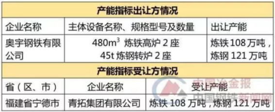 2017年7月,河北省發(fā)布《淶源縣奧宇鋼鐵有限公司鋼鐵產(chǎn)能指標轉(zhuǎn)讓公示》,將淶源縣奧宇鋼鐵公司鋼鐵產(chǎn)能指標轉(zhuǎn)讓給福建青拓集團。