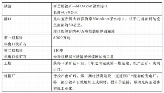 據(jù)商務(wù)部駐幾內(nèi)亞使館經(jīng)商處消息綜合幾內(nèi)亞多家媒體的報道,贏聯(lián)盟中標(biāo)幾內(nèi)亞西芒杜鐵礦1號和2號礦區(qū)區(qū)塊。贏聯(lián)盟在投標(biāo)書中提出的基建計(jì)劃總體如下: