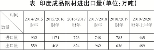 《中國(guó)冶金報(bào)》記者查閱印度鋼鐵部相關(guān)數(shù)據(jù)發(fā)現(xiàn),印度在2015/2016財(cái)年進(jìn)口鋼材數(shù)量最多,達(dá)到1171萬(wàn)噸,同期出口量最少,僅為408萬(wàn)噸;在隨后兩年均實(shí)現(xiàn)了凈出口,到2018/2019財(cái)年又成為了凈進(jìn)口國(guó),在2019/2020財(cái)年上半年再次實(shí)現(xiàn)凈出口(見(jiàn)表)。