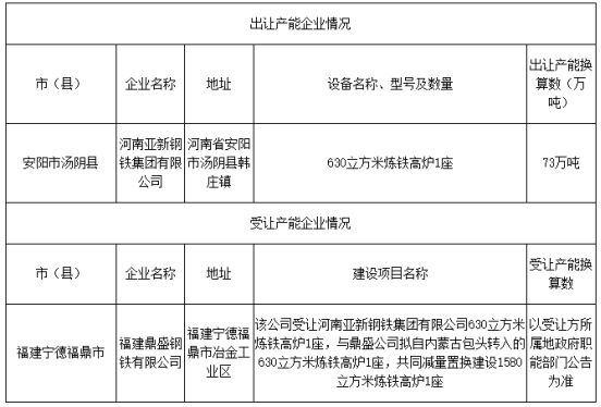 按照《國務(wù)院關(guān)于化解產(chǎn)能嚴(yán)重過剩矛盾的指導(dǎo)意見》(國發(fā)〔2013〕41號)、《工業(yè)和信息化部關(guān)于印發(fā)鋼鐵水泥玻璃行業(yè)產(chǎn)能置換實(shí)施辦法的通知》(工信部原〔2017〕337號)要求,安陽市工業(yè)和信息化局于2019年12月6日至2019年12月13日對河南亞新鋼鐵集團(tuán)有限公司1座630立方米煉鐵高爐產(chǎn)能出讓情況進(jìn)行了公示,公示期未收到任何異議?,F(xiàn)將河南亞新鋼鐵集團(tuán)有限公司產(chǎn)能出讓情況予以公告,歡迎社會公眾進(jìn)行監(jiān)督。