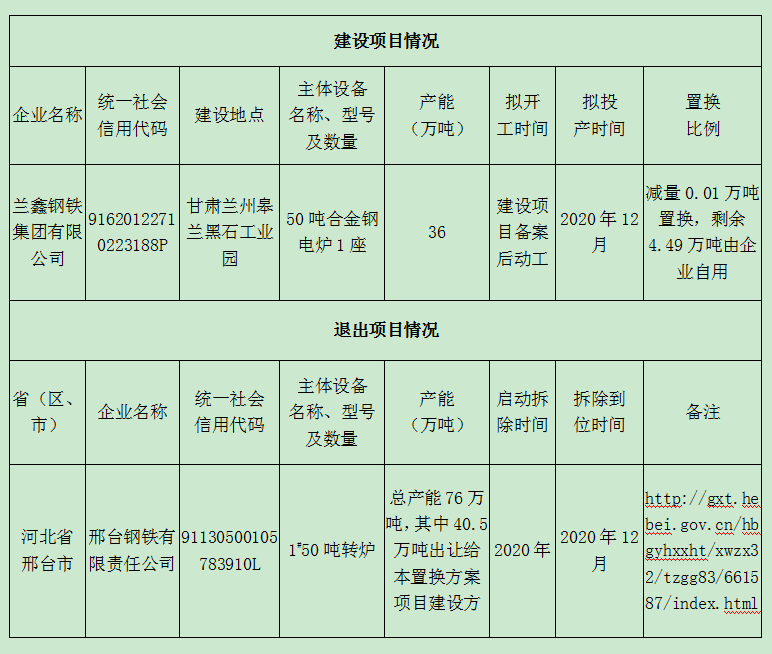 關(guān)于蘭鑫鋼鐵集團精品特鋼結(jié)構(gòu)調(diào)整項目產(chǎn)能置換方案的公示
