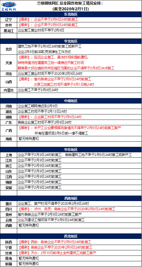 廣西:區(qū)內(nèi)未開工企業(yè)要根據(jù)自身情況不得早于2月9日24時(shí)前復(fù)工復(fù)產(chǎn)、所有在建項(xiàng)目2月9日前一律不得復(fù)工