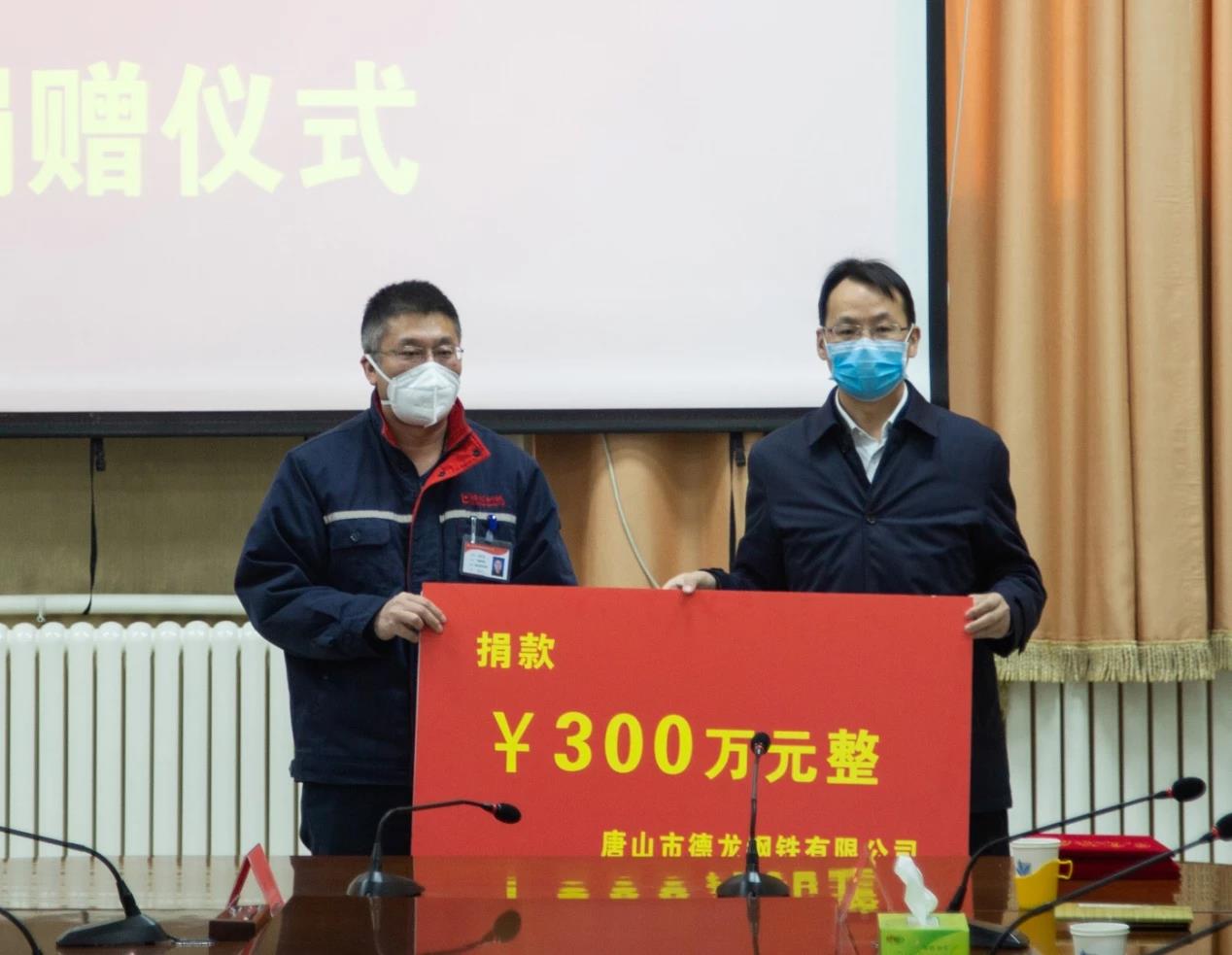 2月10日下午,樂亭縣“眾志成城·抗擊疫情”捐款儀式在樂亭縣委會議中心舉行。唐山德龍向樂亭縣人民政府捐款300萬元,用實(shí)際行動助力疫情防控工作。樂亭縣委副書記、縣長李軼,副縣長田煒,唐山德龍常務(wù)副總經(jīng)理徐燈亮,工會主席、綜合管理部部長潘立軍以及樂亭縣各企業(yè)負(fù)責(zé)人出席捐贈儀式。儀式由副縣長陳武主持。