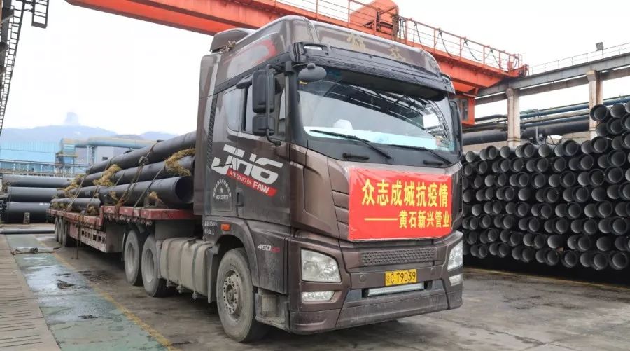 銷售總公司與各鑄管、管件生產(chǎn)基地積極協(xié)調、高效聯(lián)動,確保產(chǎn)品第一時間運到項目工地。蕪湖新興、黃石新興主動抽調專人調配急需貨源,組織車輛進廠裝車發(fā)貨。在外部車隊來源緊張,找不到車的情況下,蕪湖新興協(xié)調安排單位內部車輛進行運輸,同時為出行司機籌備了全套防護用品,安排人員對任務車輛進行全面檢查消毒,做好相關防護工作。黃石新興立即到市防疫中心開具車輛物資通行證,并安排司機進入武漢之后的后續(xù)手續(xù)。同時,在人員流動嚴格控制的情況下,緊急抽調 8人回到單位,從成品庫選出武漢急需的鑄管型號,保證車輛進廠后就能即刻裝車發(fā)貨。