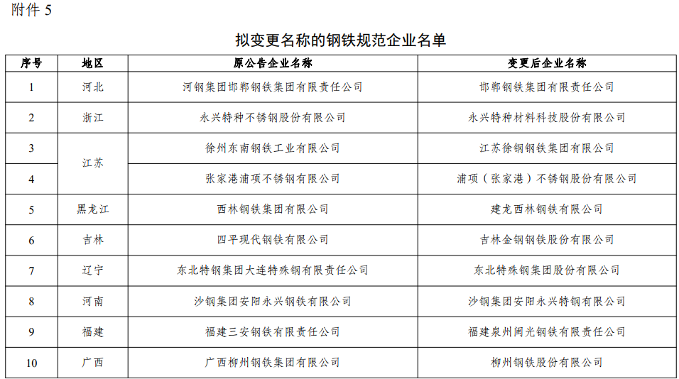 工信部關(guān)于鋼鐵規(guī)范企業(yè)動態(tài)調(diào)整情況的公示