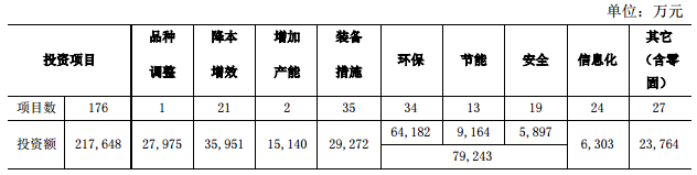 圍繞轉型升級、品種調整、裝備升級、能力提升等重點工作,2020年公司繼續(xù)在品種調整、產線優(yōu)化、降本增效、質量改善、勞動效率提升等方面計劃投資8.7427億元,