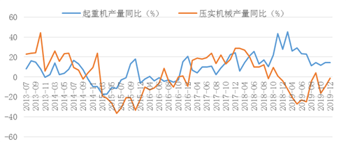圖3 起重機(jī)和壓實(shí)機(jī)械產(chǎn)量增速走勢(shì)