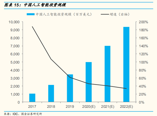 ? 根據(jù) IDC 對中國人工智能市場的預(yù)測,2020 年中國人工智能投資規(guī)模將達(dá) 50 億美元(約 350  億人民幣),到 2022 年中國的人工智能市場投資規(guī)模將近百億美元,將形成一個新的極具規(guī)模的的產(chǎn)業(yè)生態(tài)。