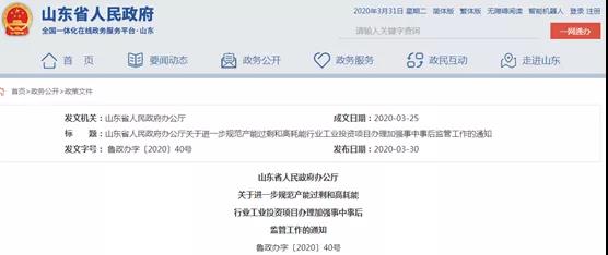 山東省人民政府辦公廳關(guān)于進(jìn)一步規(guī)范產(chǎn)能過剩和高耗能行業(yè)工業(yè)投資項(xiàng)目辦理加強(qiáng)事中事后監(jiān)管工作的通知