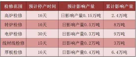 日前,沙鋼集團(tuán)公布設(shè)備檢修安排。截至4月30日,沙鋼集團(tuán)將安排高爐、轉(zhuǎn)爐、電爐、線材線、厚板生產(chǎn)線檢修,共累計(jì)影響產(chǎn)能28.8萬噸。