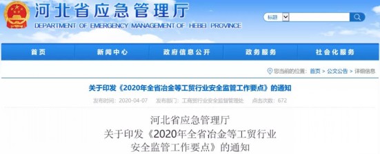 4月7日,河北省應(yīng)急管理廳發(fā)布《2020年全省冶金等工貿(mào)行業(yè)安全監(jiān)管工作要點(diǎn)》(以下簡(jiǎn)稱“《要點(diǎn)》”)。