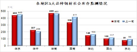 4月上旬,分地區(qū)來(lái)看,華中和華南地區(qū)鋼材庫(kù)存較上一旬有所增加,數(shù)量分別為18萬(wàn)噸和8萬(wàn)噸;其他區(qū)域均呈下降趨勢(shì)。降幅較大的地區(qū)仍為西南,比上一旬下降18.3%,東北和西北分別下降15.0%和12.1%,其他區(qū)域降幅不大。