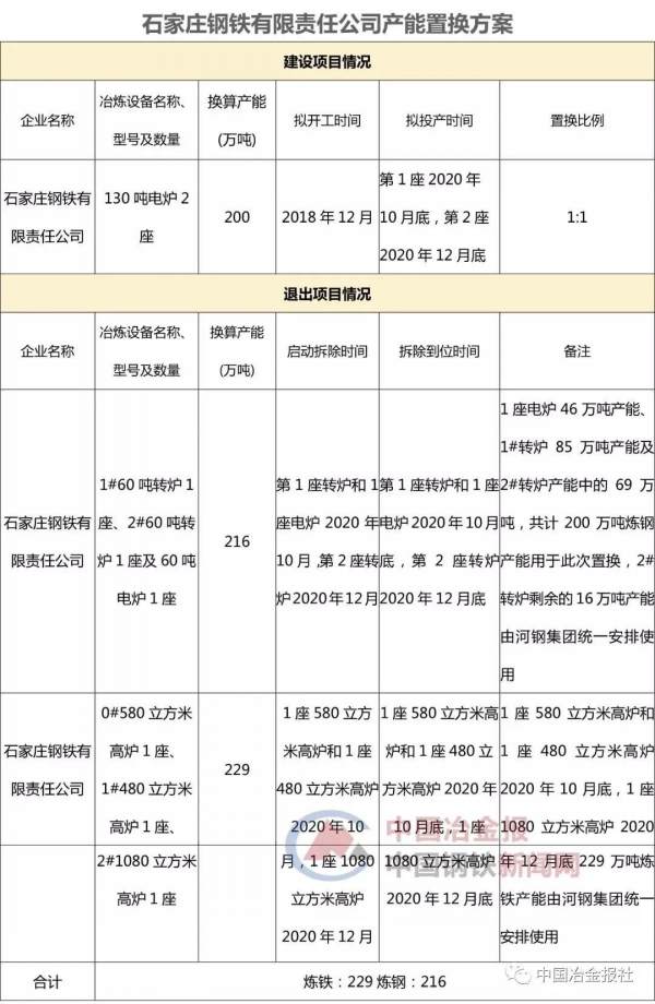 2018年10月30日,河北省工信廳發(fā)布了《河鋼集團(tuán)石家莊鋼鐵有限責(zé)任公司建設(shè)項(xiàng)目產(chǎn)能置換方案公示》,提出河鋼石鋼將于2018年12月在石家莊市井陘礦區(qū)開工建設(shè)新項(xiàng)目。在搬遷設(shè)計(jì)上,河鋼石鋼將在井陘礦區(qū)新建兩座130噸電爐,換算產(chǎn)能為200萬噸。